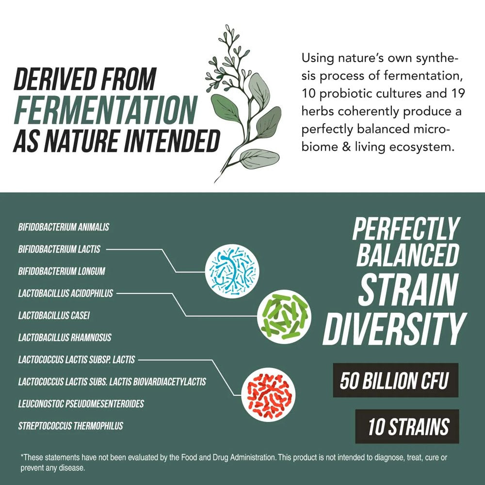 - A LIVING FULL-SPECTRUM MICROBIOME AS NATURE INTENDED: Each bottle contains a living ecosystem of perfectly balanced microbiome formulated to replicate a healthy gut and digestive system, delivering not only the probiotics but also the prebiotics, enzymes, and postbiotics necessary for vital health. Everything you need to restore your inner microbiome is contained in this bottle.