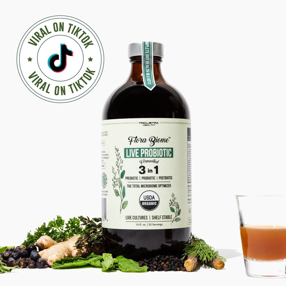 Flora Biome - Live Probiotic, Prebiotic & Postbiotic – Organic, Fermented Live-Culture – 10 Probiotic Strains, 19 Fermented Herbs, 50 Billion CFU - Complete Gut Health & Microbiome Optimizer (16 Oz) - 1-Bottle is backordered and will ship as soon as it is back in stock.