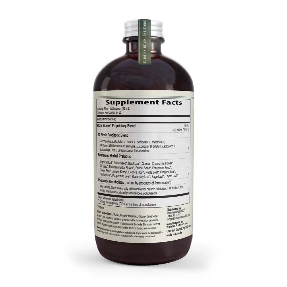 Flora Biome - Live Probiotic, Prebiotic & Postbiotic – Organic, Fermented Live-Culture – 10 Probiotic Strains, 19 Fermented Herbs, 50 Billion CFU - Complete Gut Health & Microbiome Optimizer (16 Oz)