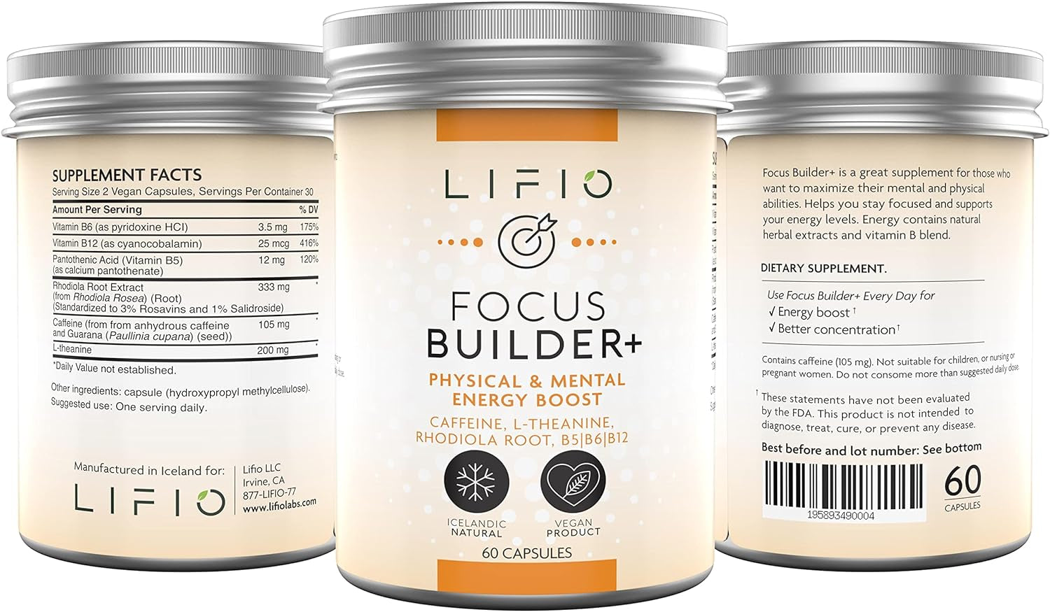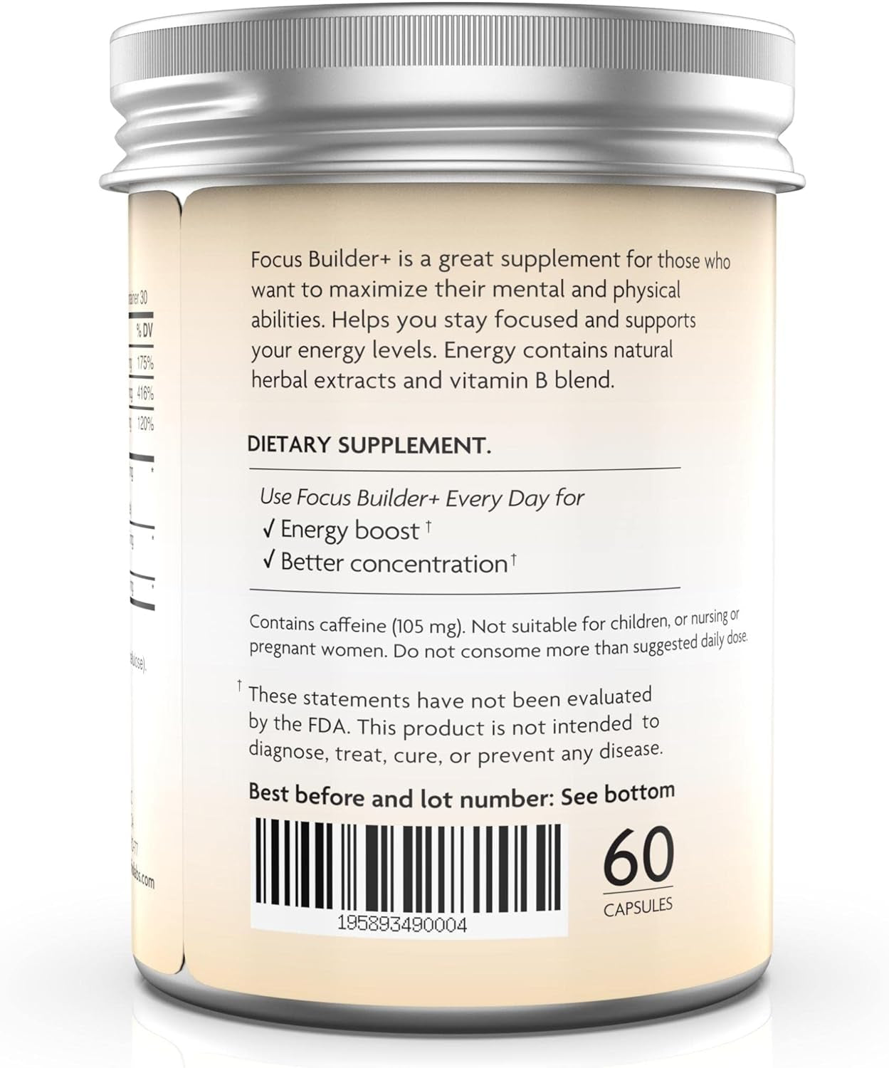Focus Builder+ WITH CAFFEINE, L-THEANINE, RHODIOLA ROOT, B5|B6|B12.