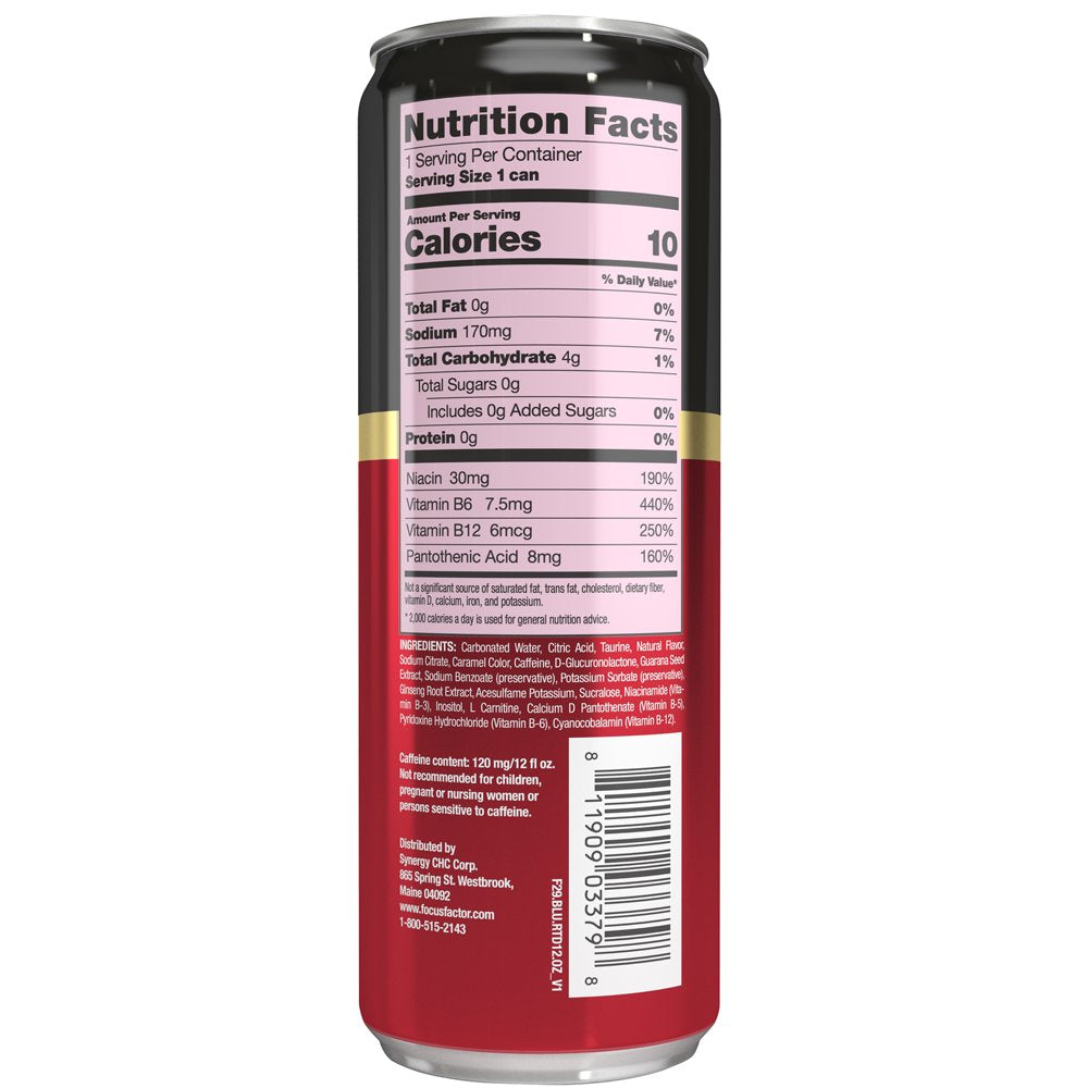 TASTY + CONVENIENT 12 PACK: When your routine demands focus + energy, reach for delicious, lightly carbonated, Berry flavored (artificially flavored) Focus Factor F29 energy drinks.