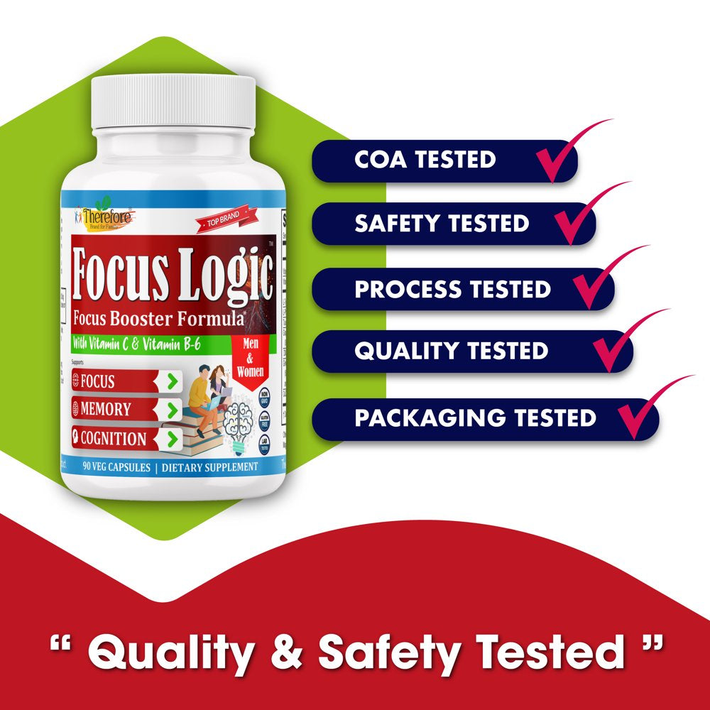 FocusLogic adult ginkgo biloba brain vitamins and supplements is formulated with potent Ingredients by nutritional professionals to help with supporting your Mind, Clarity & Balance*. With a scientifically formulated blend of focus and memory assisting vitamins and nutrients, we've created the ultimate focus supplement to help support concentration, mental alertness and memory power. Whether you’re a workaholic, college student, busy mom, senior or training athlete you want to achieve your goals & Reach Optimum Efficiency! Let our brain and best brain focus and memory supplements take care and help boost your energy and focus.* We carefully select specific brain and memory supporting herbs and nutrients expressly to help with cognitive function and mental clarity. brain health supplement for men and women easy to take support healthy brain function. Memory focus supplement for brain To Help adults and seniors help focus, boost focus, and attention, memory cognition