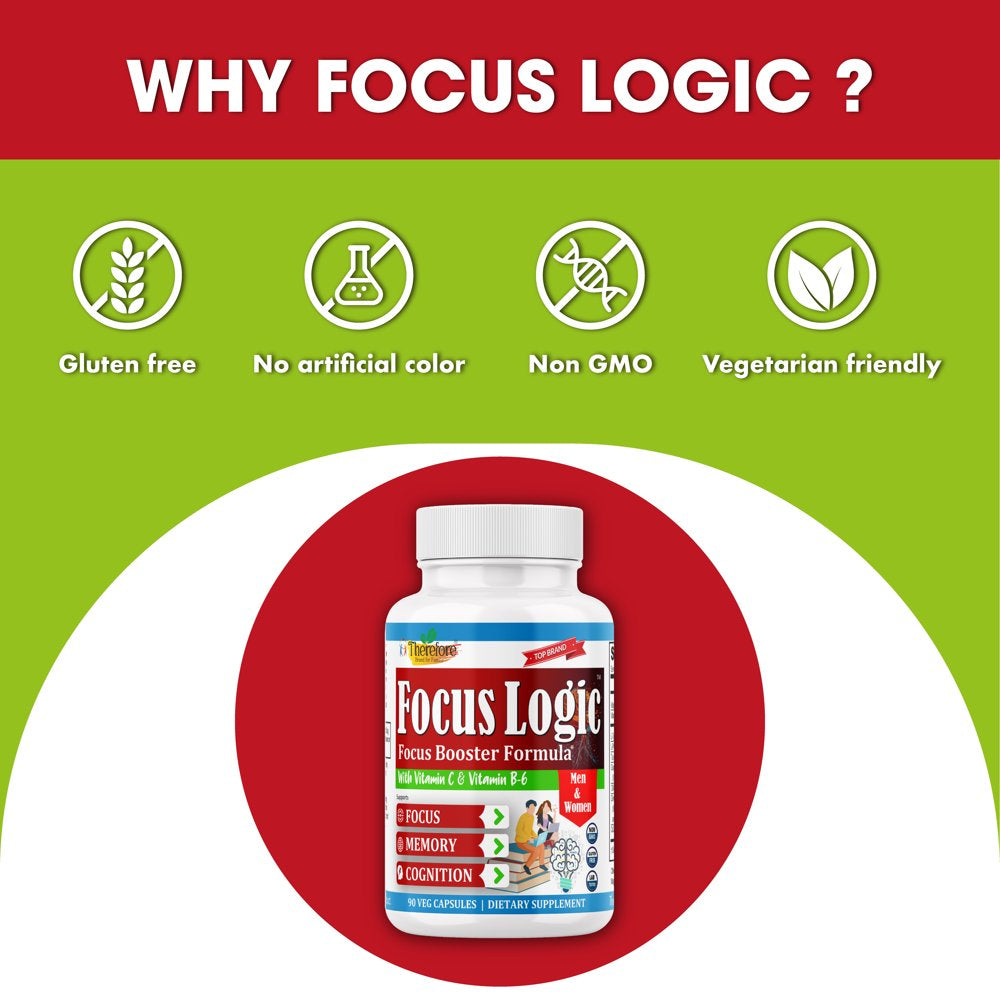 Focuslogic Brain Supplement for Memory and Focus, Nootropics for Concentration, Energy, Cognitive, & Mental Clarity, Memory Supplements for Seniors & Adults, Energy & Mood Booster- 90 Capsules