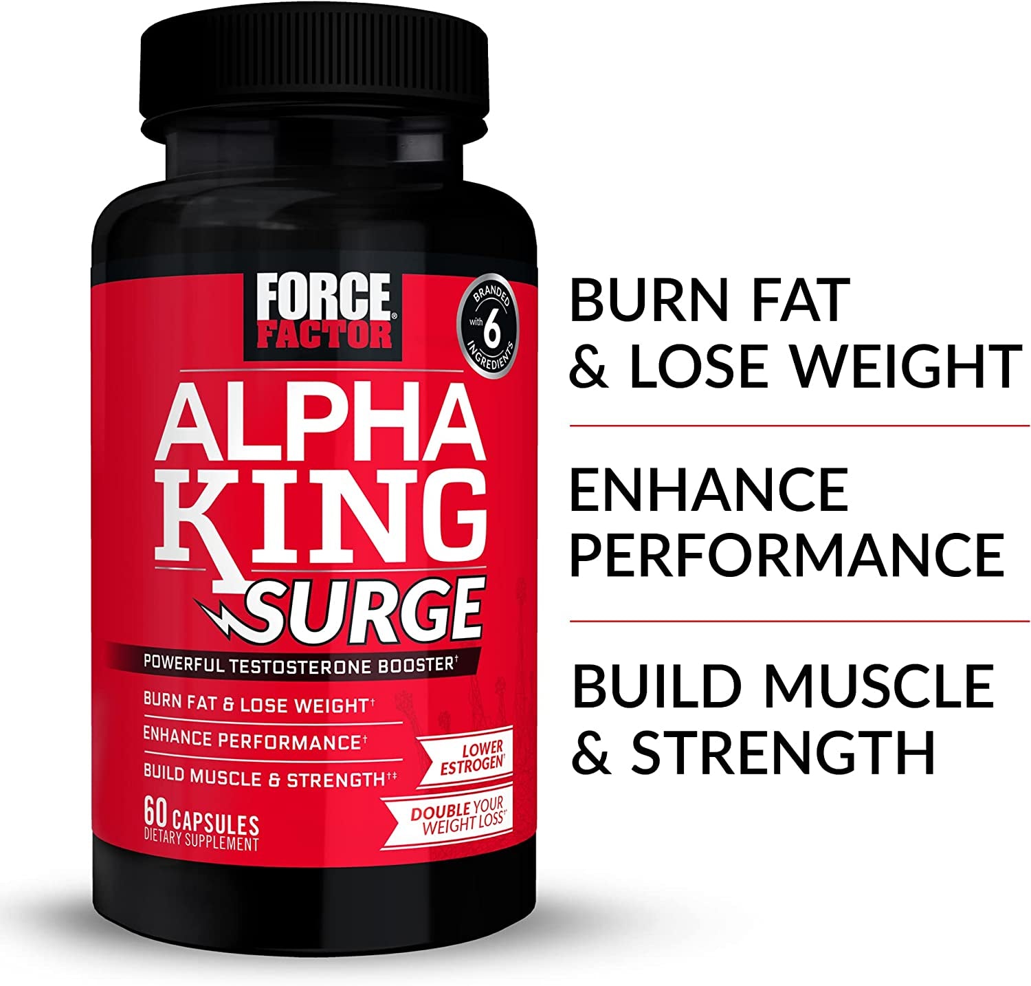 FORCE FACTOR Alpha King Surge Testosterone Booster for Men, Testosterone Supplement to Help You Build Muscle and Strength, Burn Fat, Lose Weight, Lower Estrogen, and Enhance Performance, 60 Capsules