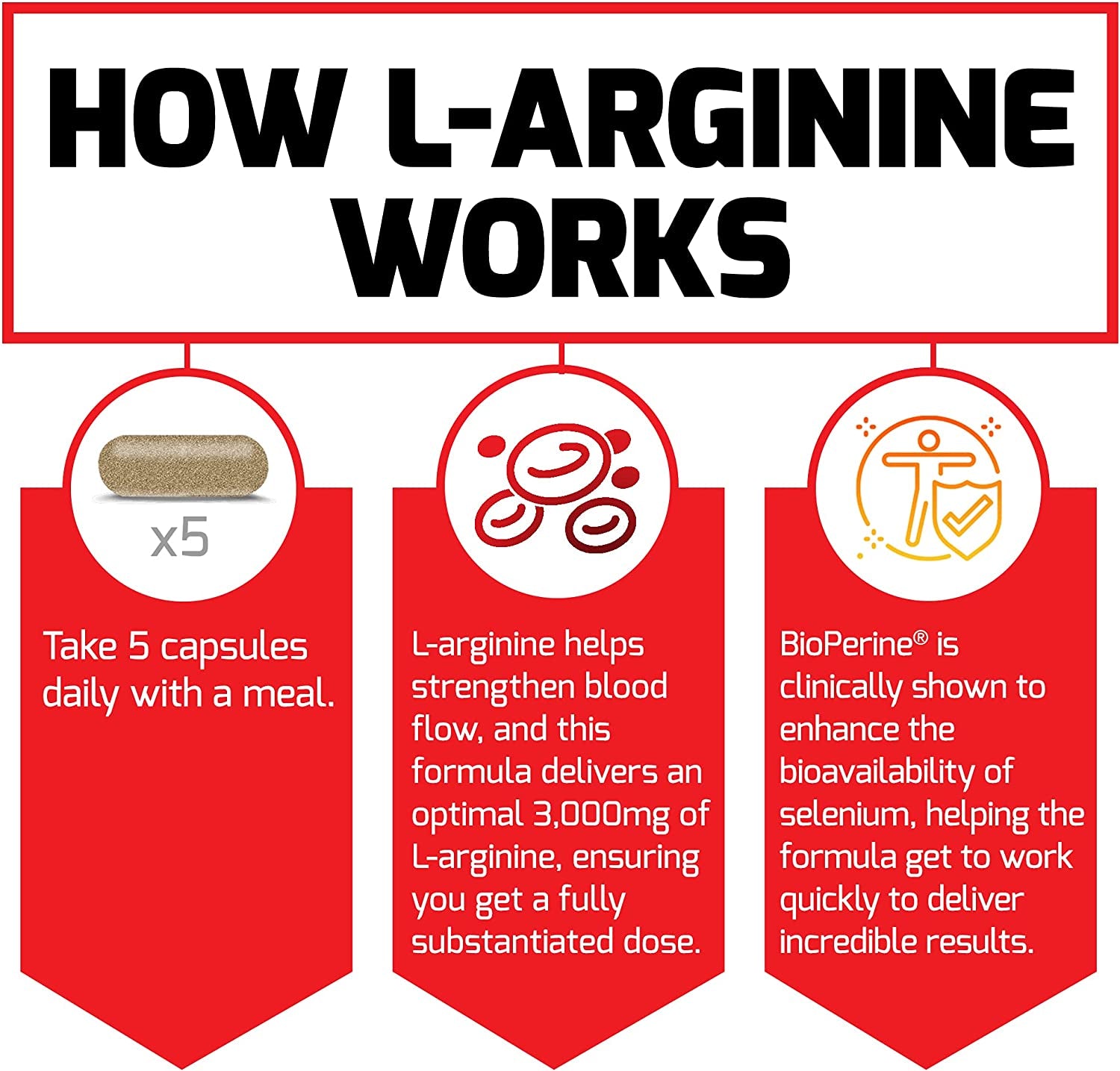 - STRENGTHEN BLOOD FLOW: L-Arginine is a potent amino acid that increases nitric oxide production in the body, which leads to stronger blood flow, helping to deliver essential nutrients and oxygen to your muscles for enhanced performance