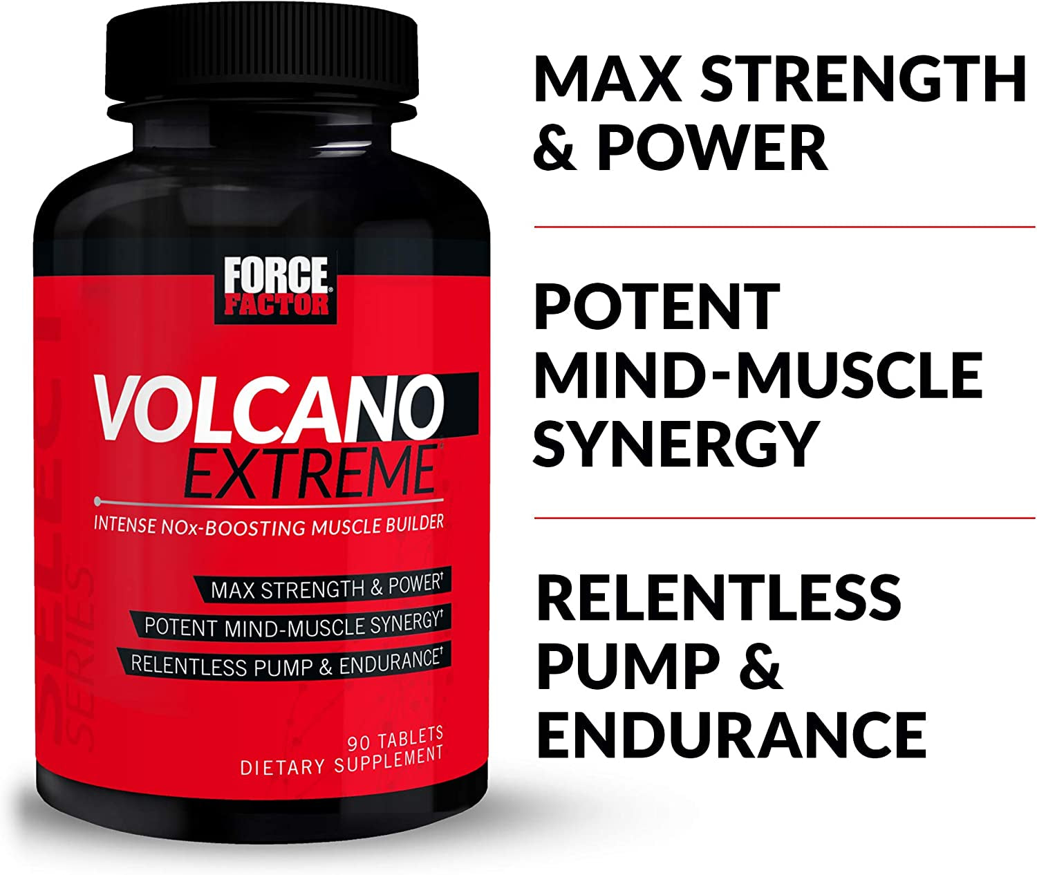 Force Factor Volcano Extreme Pre Workout Nitric Oxide Booster Supplement for Men with Creatine, L-Citrulline,And Huperzine a for Better Muscle Pumps, Strength, Focus, Workout Performance, 90 Tablets