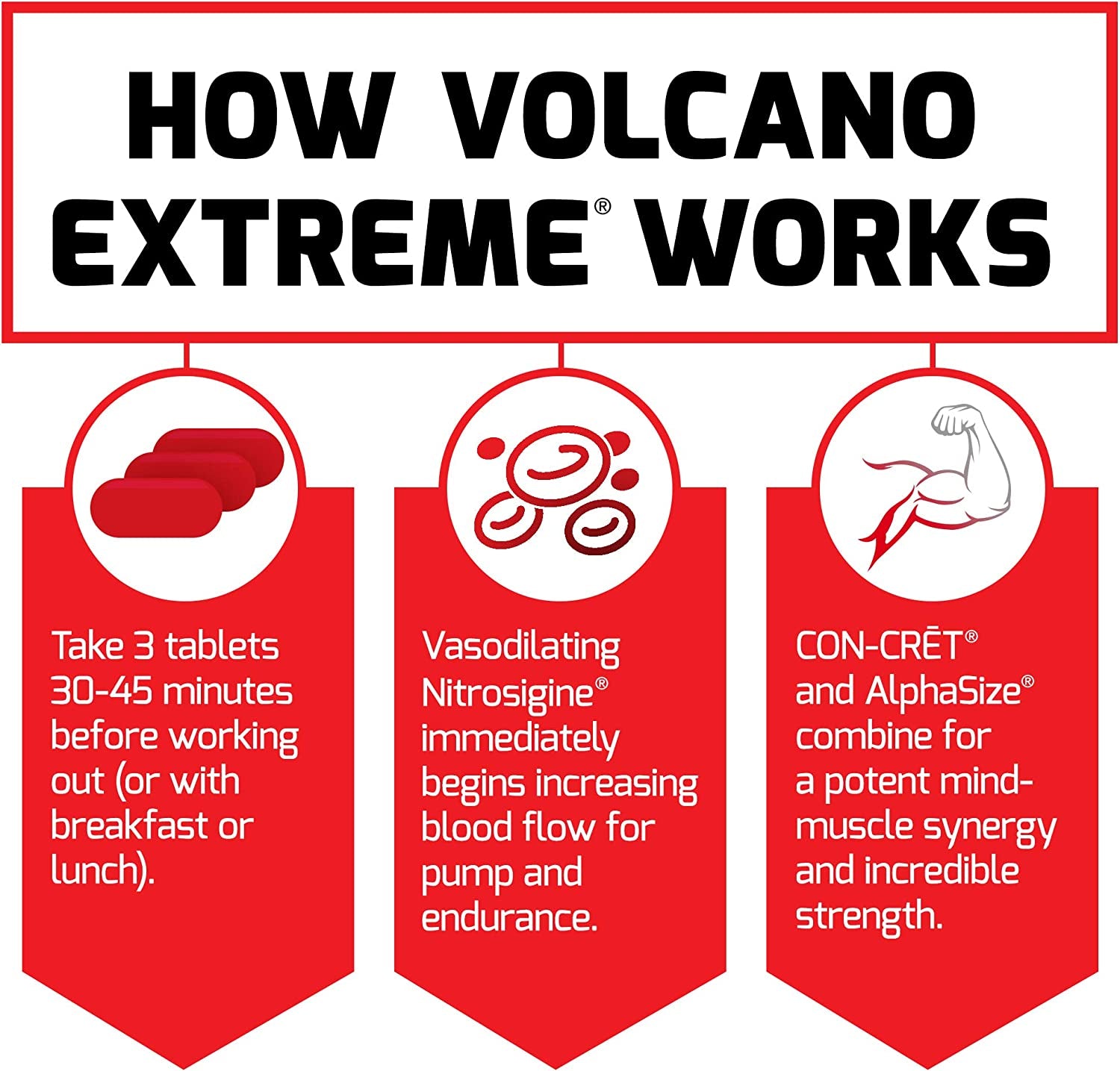- BOOST STRENGTH & POWER: VolcaNO Extreme contains innovative ingredients that deliver more strength, more power, and more lean muscle. It’s a fast, efficient way to achieve extreme results in the weight room.