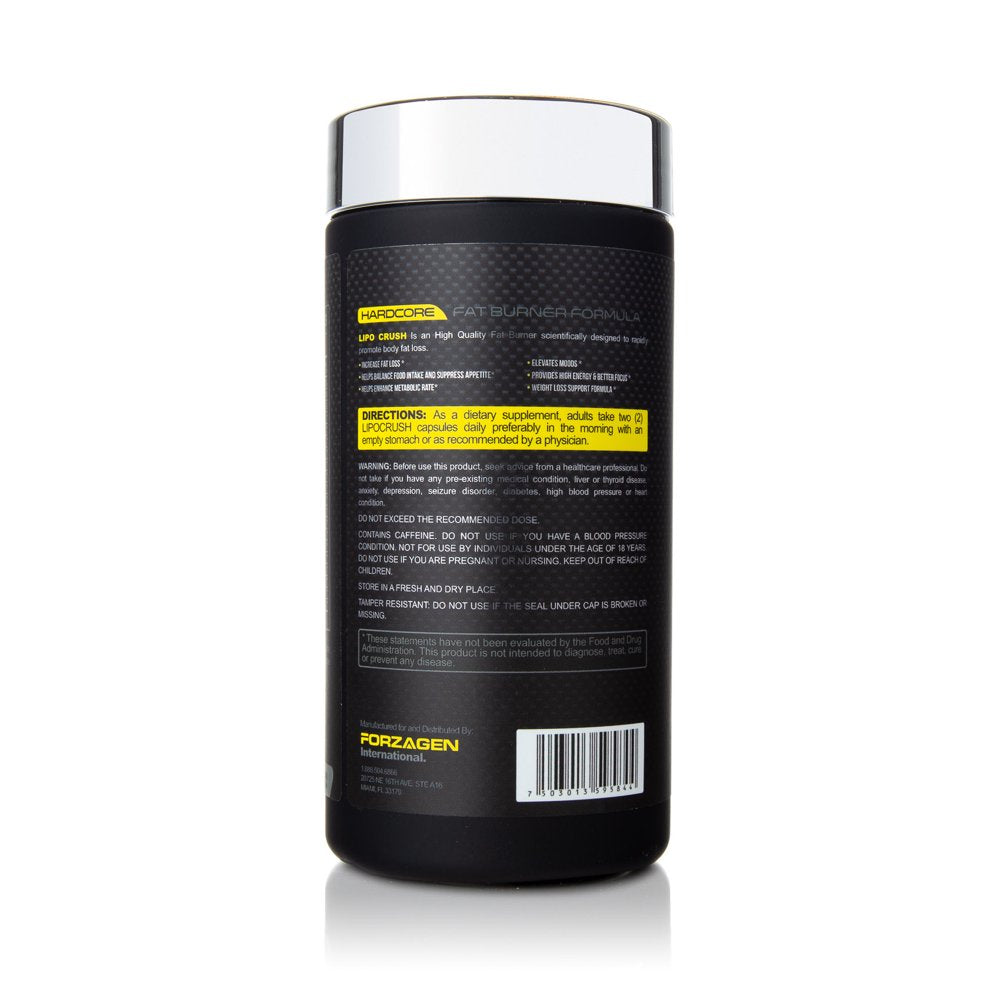 FORZAGEN LIPOCRUSH FAT BURNER -“The multi-level fat loss system” takes the bright approach to weight-loss by addressing multiple areas that dieting cannot, leading to high impact results; improving energy, hunger, metabolism and mood.Increase Fat LossElevates MoodsHelps Balance Food Intake and Suppress AppetiteProvides High Energy & Better FocusHelps Enhance Metabolic RateWeight Loss Support Formula Specially Designed for Athletes