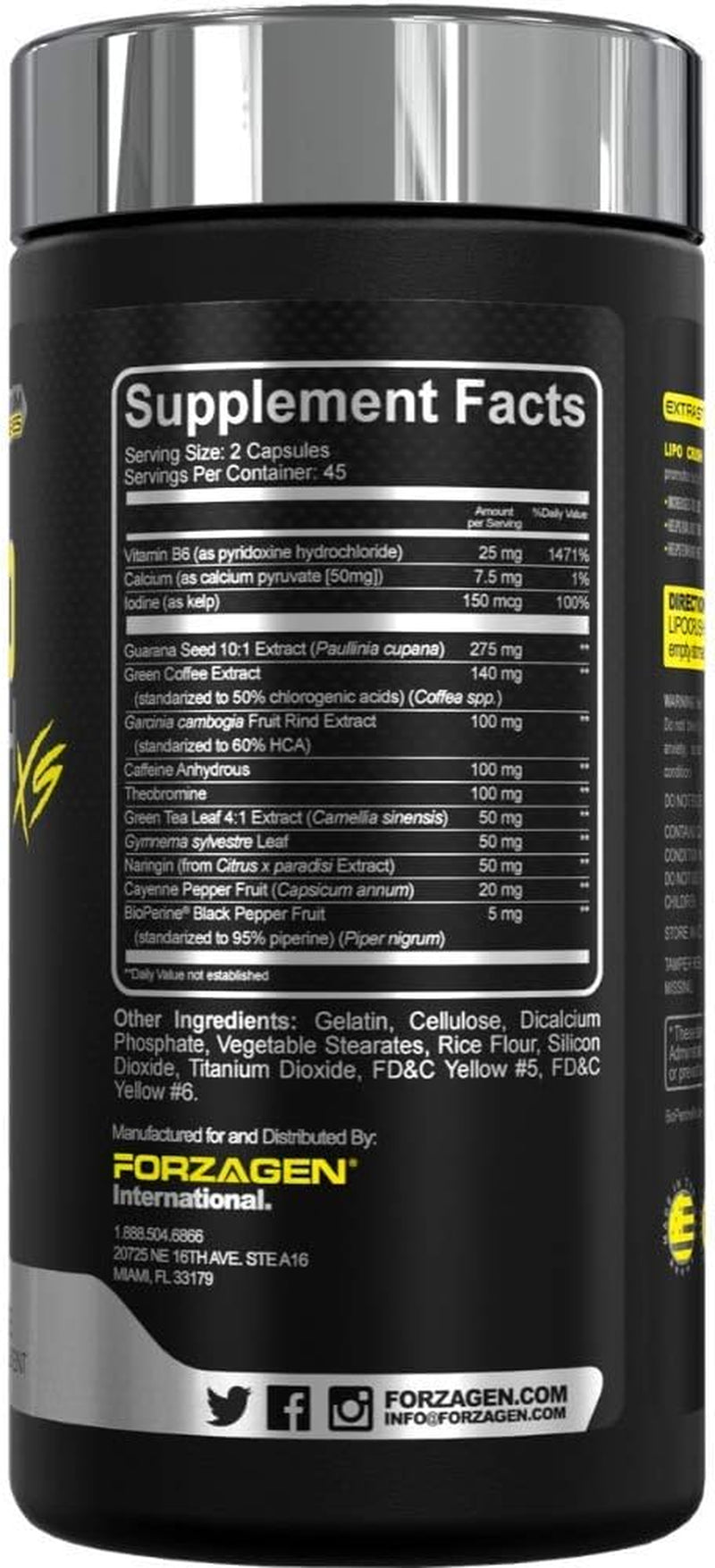 Forzagen Lipocrush Thermogenic Fat Burner for Men and Women, 90 Belly Fat Burner for Weight Loss Capsules, Quemador De Grasa, Made with Guarana Seed, Green Coffee Bean Extract and Green Tea Leaf is backordered and will ship as soon as it is back in stock.