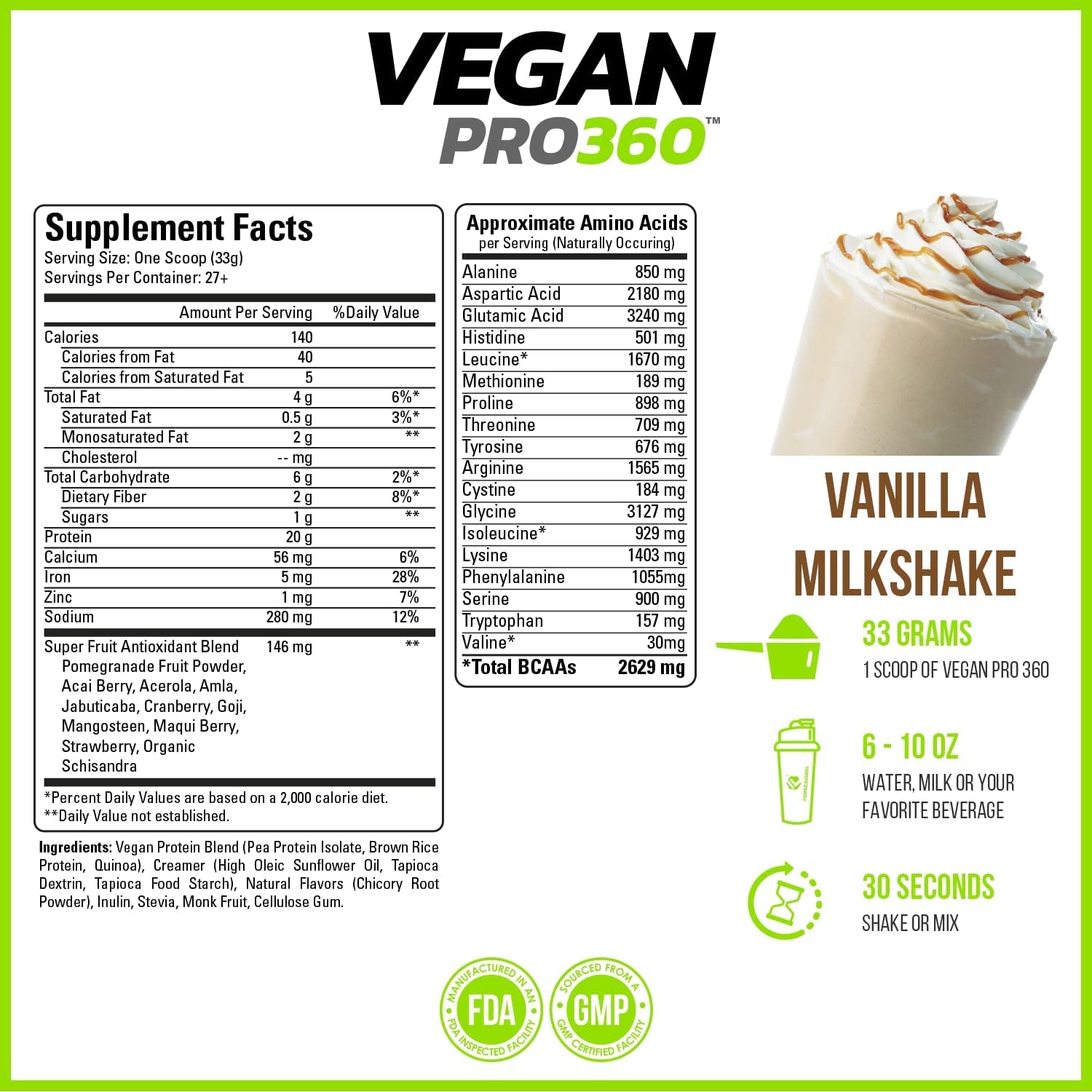Forzagen Vegan Protein 360 2 Lbs 27 Servings, Plant Based Protein Extracted from Quinoa, Brown Rice and Pea Isolate Protein, Dairy, Soy and Gluten Free, Nom GMO (Vanilla Milkshake) - Vanilla Milkshake / 2 Pound (Pack Of 1) is backordered and will ship as soon as it is back in stock.