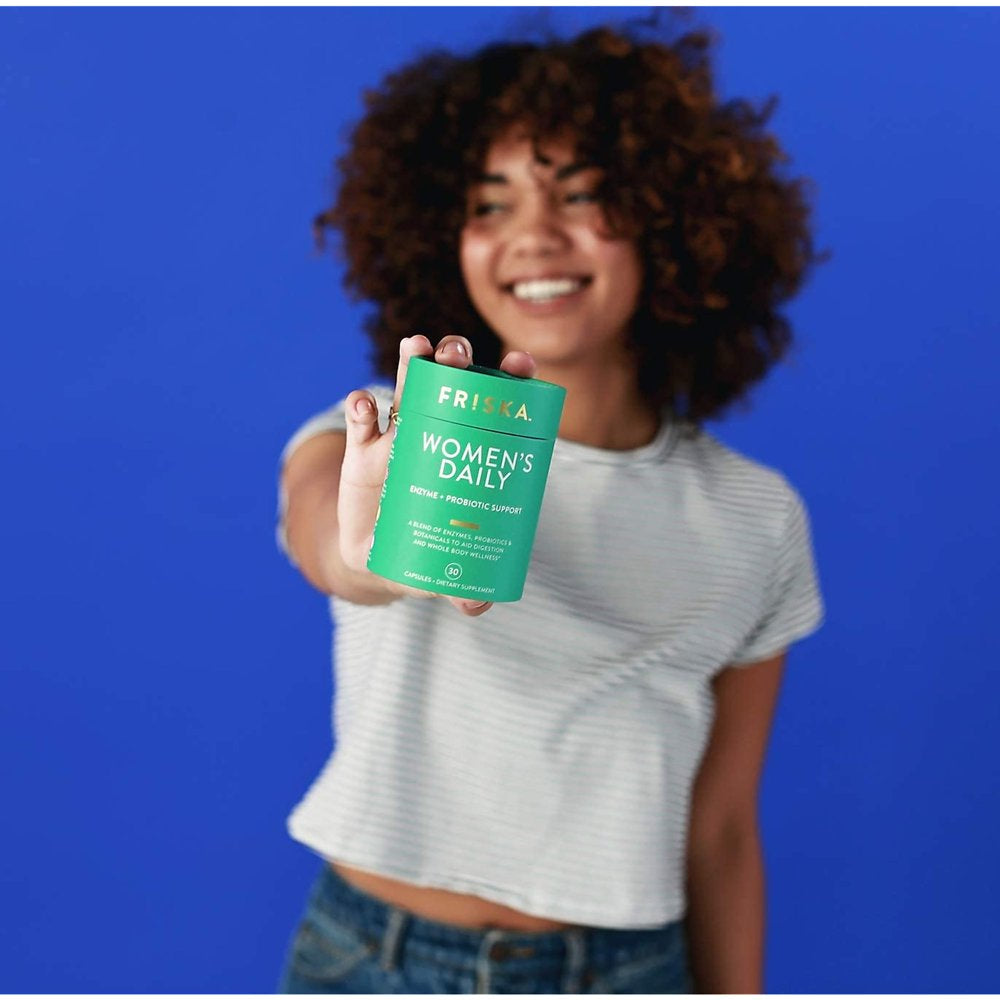 FRISKA Womens Daily Digestive Enzyme and Probiotics Supplement, Natural Support for Female Digestion, Immune and Urinary Health, 30 Capsules