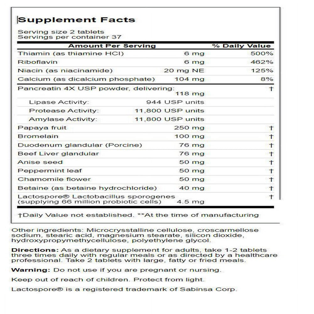 Quadruple strength Pancreatin delivers a range of digestive enzyme activity to help support digestion and nutrient absorption by helping the body process fats, proteins, carbohydrates and other difficult-to-digest foods: