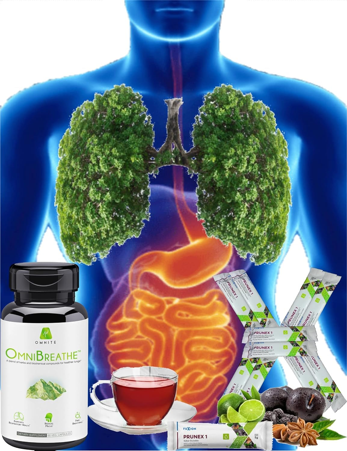Fuxion 30-Day Boost Kit W. Possitive Results - [Omnibreathe] after Breakfast for Deep Lung Cleanse to Restore Fresh Breathe & [Prunex 1] before Sleep for Gentle Colon Detox to Get Constipation Relief