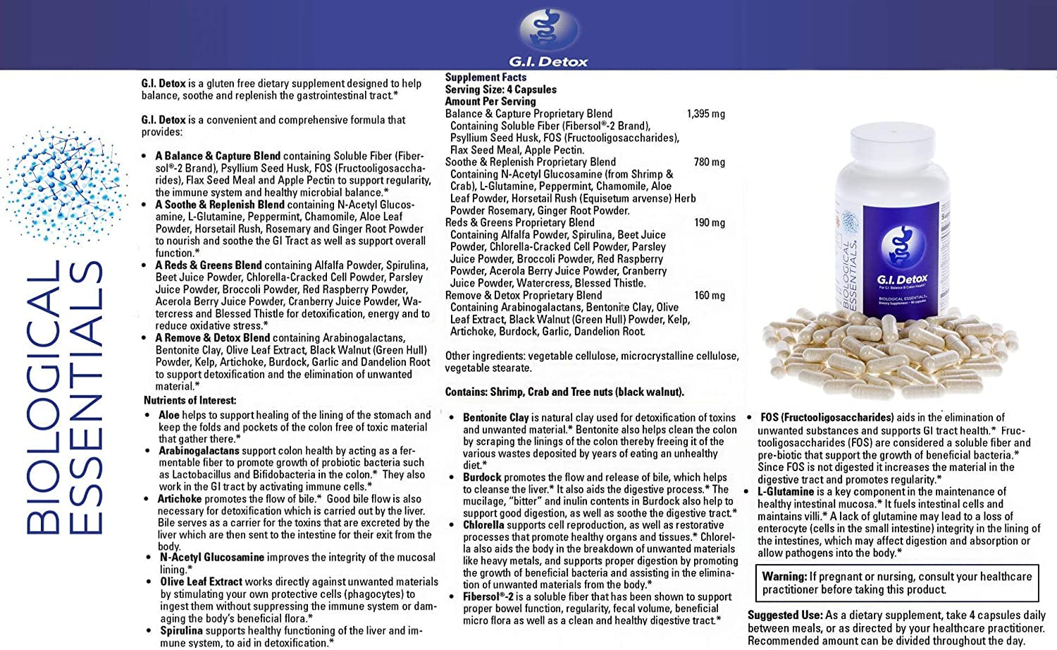Capture, detox, balance, sooth, remove and replenish with G.I. Detox from Biological Essentials.