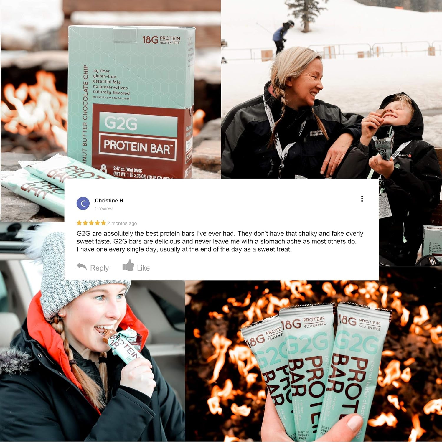 - G2G bars are loved by athletes, families, kids, and outdoor enthusiasts! Perfect for hiking, biking, golfing, a day at the beach or the park. Natural fuel for your next workout or run or simply throw in your purse (or murse) for a convenient and healthy meal on the go.