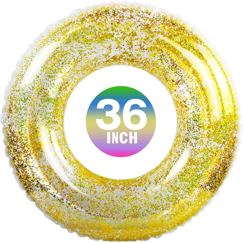 Gara Inflatable Swim Ring, Pool Ring Floating Pool Tube, Glitter Pool Swim Tube Ring for Kids, Adults, Yellow Sequins Glitter Pool Float for Beach Lake - 36 Inch is backordered and will ship as soon as it is back in stock.