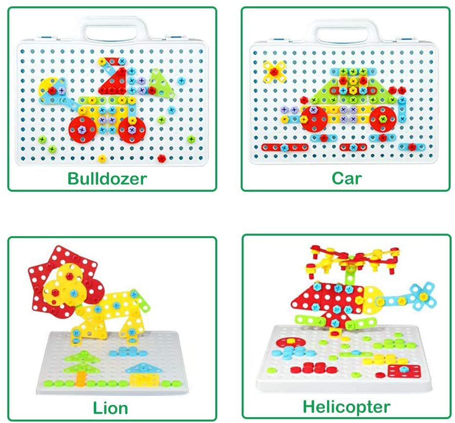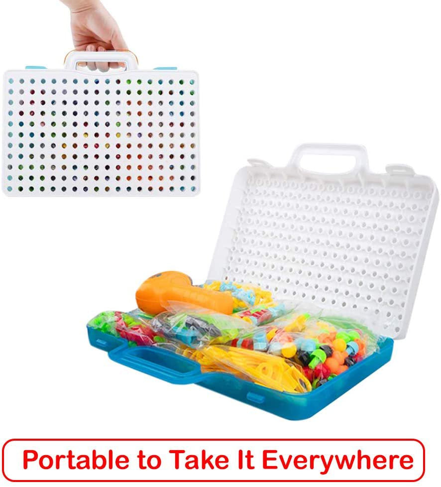 - 【2-IN-1 PRESCHOOL LEARNING TOYS FOR KIDS】: A convenient set of educational toys for kids in one design; Incorporating two amazing games of creative mosaic drill set and pegs for pegboard puzzle toy for hours of STEM activities for kids