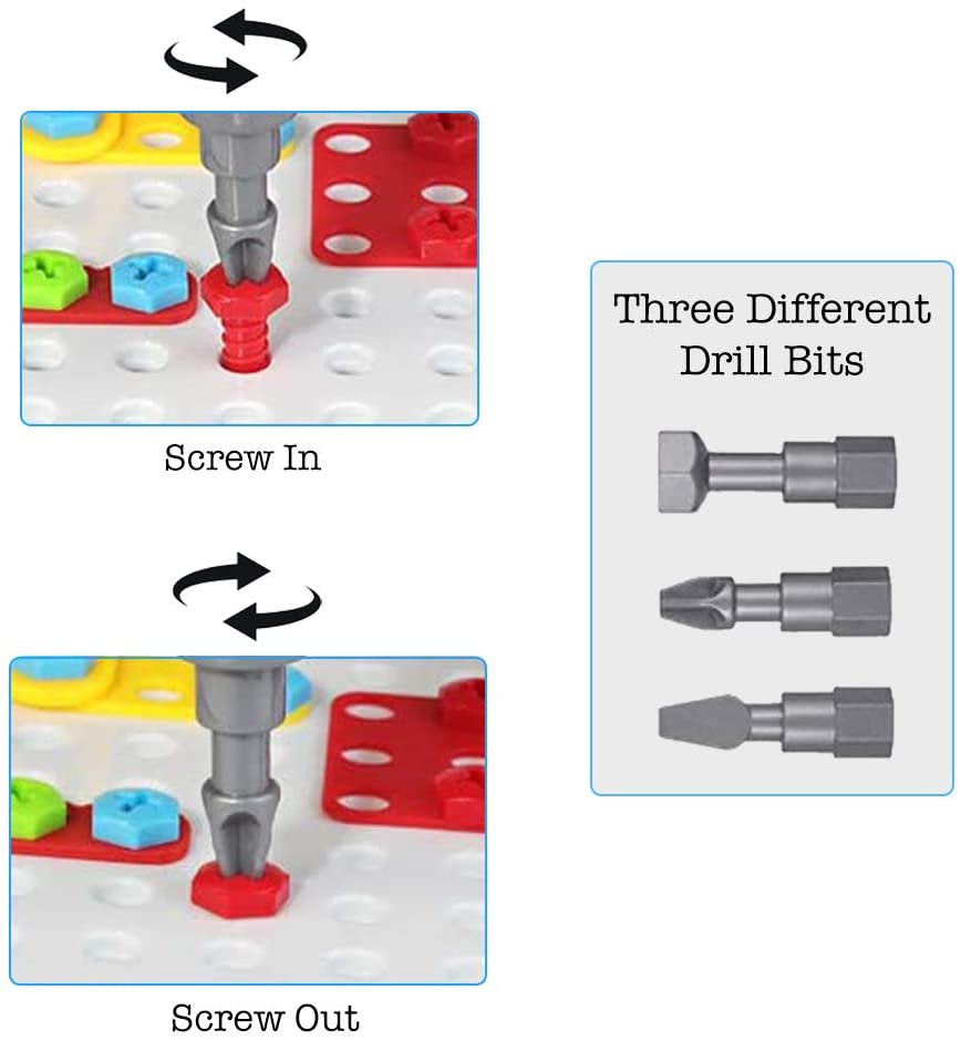 - 【CREATIVE TOY OF DESIGN AND DRILL】: With the use of the AA battery operated small electric drill, screwdriver, and screw nuts, this educational craft toy allows your child to embrace their creative side by making unique 2D and 3D designs that are all their own; Batteries are NOT included