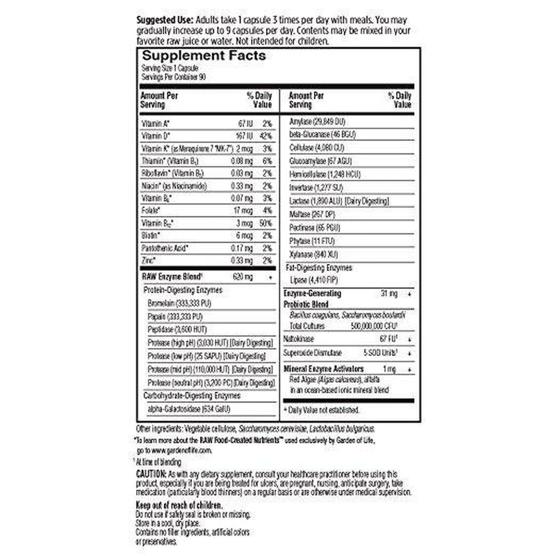 As women age, they tend to experience a drop in stomach acid production which impacts protein digestion. Garden of Life RAW Enzymes Women 50 & Wiser has been specifically formulated to meet the unique digestive and overall health needs of women over 50—with amplified strength of carbohydrate-digesting enzymes plus powerful protein-digesting enzymes. Garden of Life RAW Enzymes Women 50 & Wiser is the strongest and most complete digestive enzyme formula available today—providing 22 powerful digestive enzymes, probiotic-created vitamins, minerals and antioxidant enzymes including glutathione, catalase and SOD with powerful probiotics that act as “enzyme factories”—generating additional enzymes—working overtime for extraordinary digestive health.