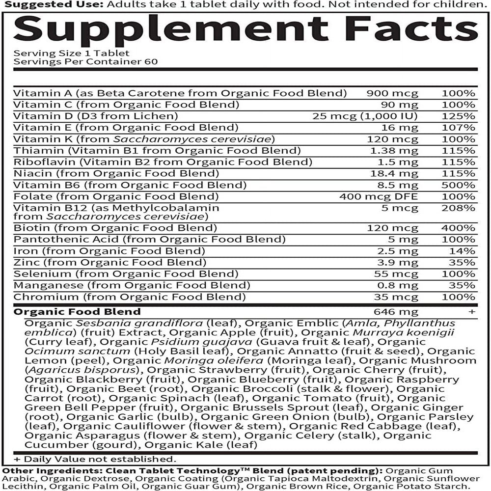 - CERTIFIED ORGANIC MULTIVITAMIN: Proudly Third-Party Certified USDA Organic, Non-GMO, NSF Gluten Free, Vegan and Kosher, this whole food multivitamin contains NO synthetic binders or fillers—just real organic whole foods