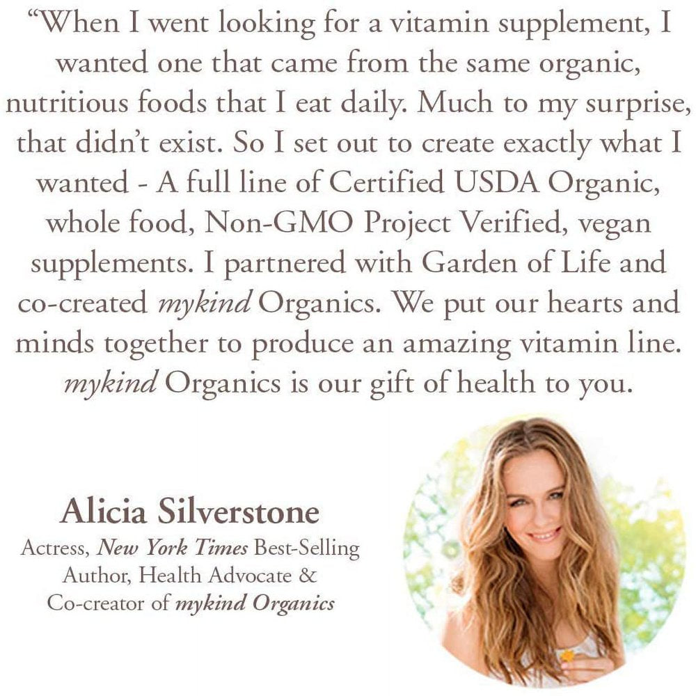 Garden of Life Multivitamin for Women - mykind Organics Women's Once Daily Multi - 60 Tablets Finally, it’s here—a whole food multi from real, nutritious foods that’s Certified USDA Organic, Non-GMO Project Verified and is specifically formulated in a once-daily dose for the needs of women: mykind Organics Women’s Once Daily. Made from over 30 powdered organic fruits, vegetables and herbs, mykind Organics Women’s Once Daily offers numerous vitamins and including great levels of B vitamins for radiant skin and nails. It also provides vitamin B-12 in methylcobalamin form—a highly absorbable, active, natural form of B-12, like the B-12 in the body. Women’s Once Daily also delivers vegan D3 from lichen for immune support and 2.5mg of iron for blood support. Women’s Once Daily is made from real organic whole food, including lemons, annatto, amla berry, holy basil and many more—providing perfect support for your demanding lifestyle—all in just one organic tablet daily. mykind Organics Women’s Once Daily—a Certified USDA Organic, Non-GMO Project Verified women’s multivitamin once-daily formula made from certified organic whole foods, for women’s health, energy and beauty.