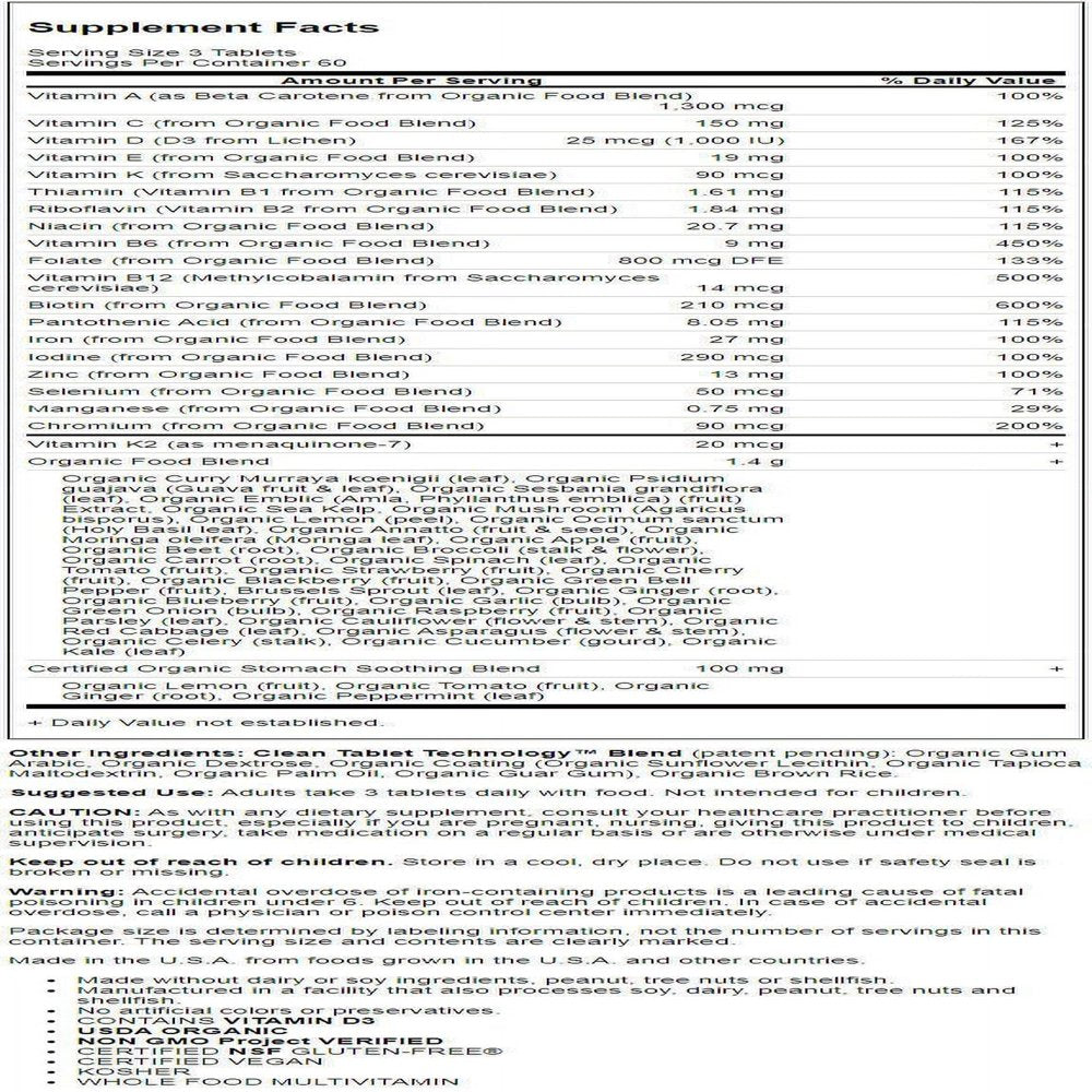 Promotes healthy fetal development; Supports energy; Supports comfortable digestion; Organic Clean Tablets?No Magnesium Stearate (Vegetable Lubricant)
