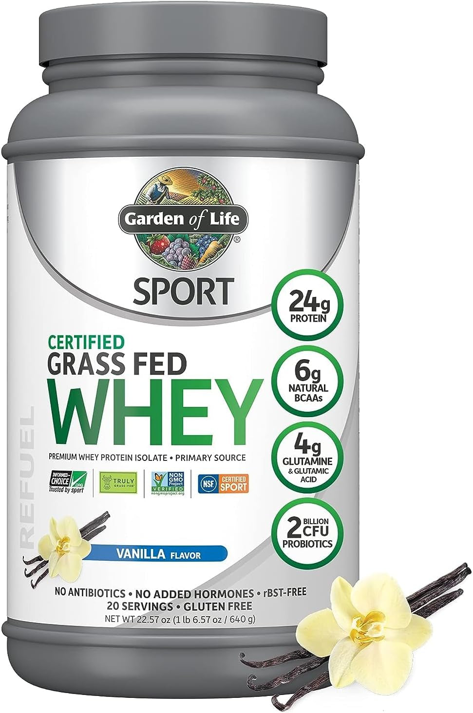 GARDEN OF LIFE Organic Vanilla Sport Whey Protein, 652 Gram Garden of Life Sport Certified Grass Fed Whey Chocolate is part of a complete sport system. For Garden of Life to launch an animal protein, the entire system had to be different from other “so-called grass fed” protein. They needed a holistic approach to their protein that started at the farm and traced every metric straight through to the tub. Although many whey protein products may call themselves “grass fed,” their research showed this wasn’t truly the case. Almost all dairy farms still used animal feed full of soy, corn and GMOs. Why? Typically, there are too many cows to feed year-round on grass. Their search ultimately ended in Ireland with a coop of 4,800 generational family farmers whose herds feed only in green pastures. The 4 Truths That Make Truly Grass Fed Certified Whey Unique: