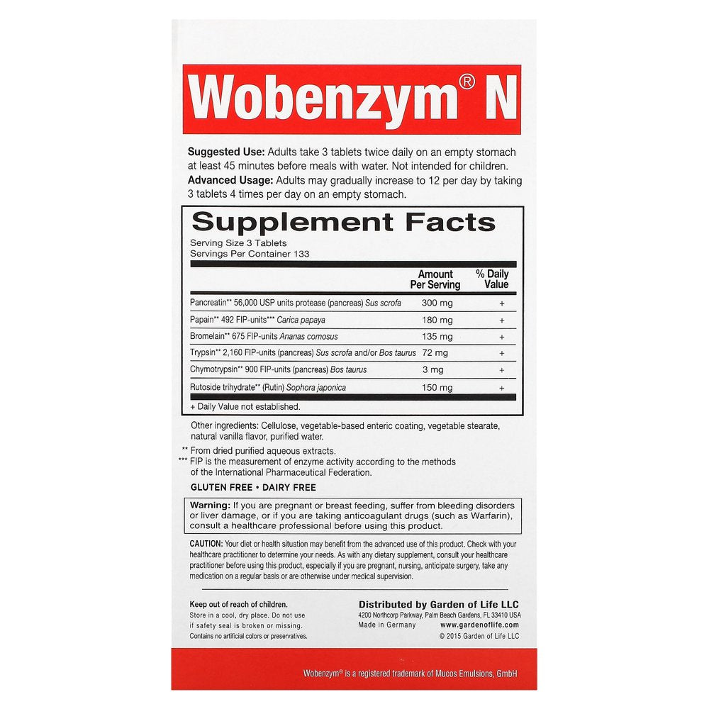 Garden of Life Wobenzym N Inflammation and Joint Support Tablets, 400 Ct