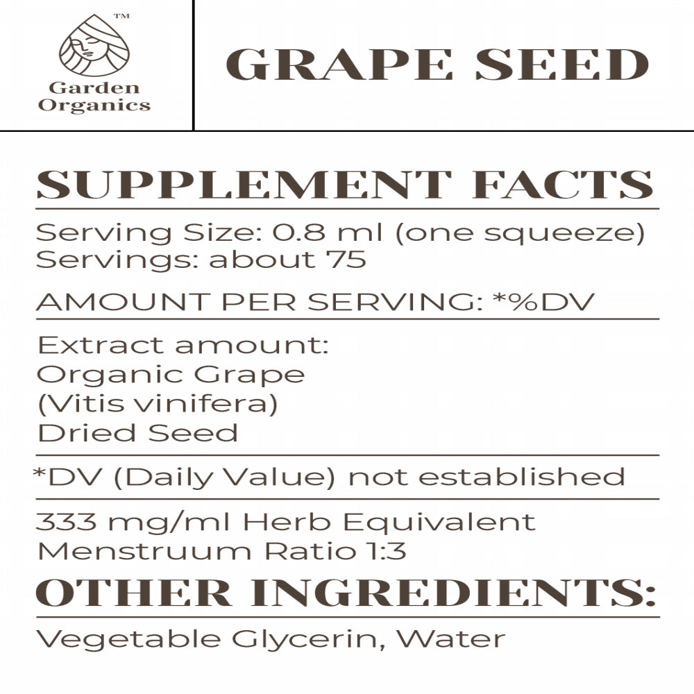 | Product Name | Garden Organics Grape Seed Tincture Alcohol-FREE Extract, Organic Grape (Vitis vinifera) Dried Seed 2 oz |