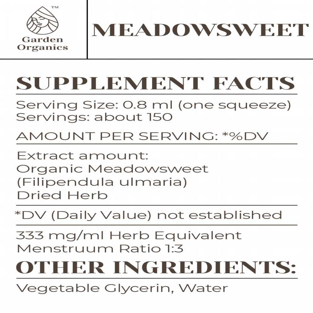 Garden Organics Meadowsweet Tincture Alcohol-Free Extract, Organic Meadowsweet (Filipendula Ulmaria) Dried Herb 4 Fl Oz