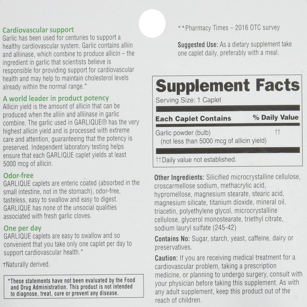 Garlique Dietary Supplement, 60 Caplets