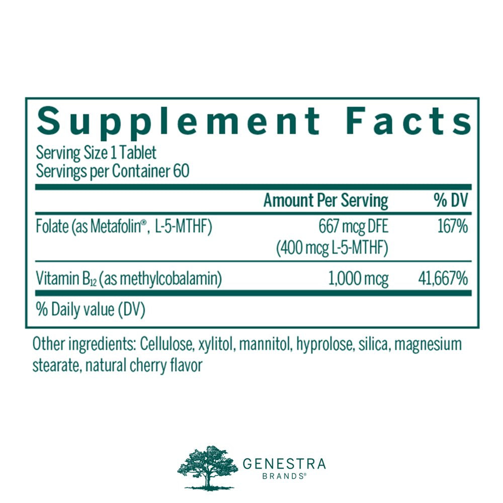 Genestra Brands Active Chewable B12 with L-Methylfolate | Chewable Vitamin B12 and Folate Supplement | 60 Chewable Tablets | Natural Cherry Flavor