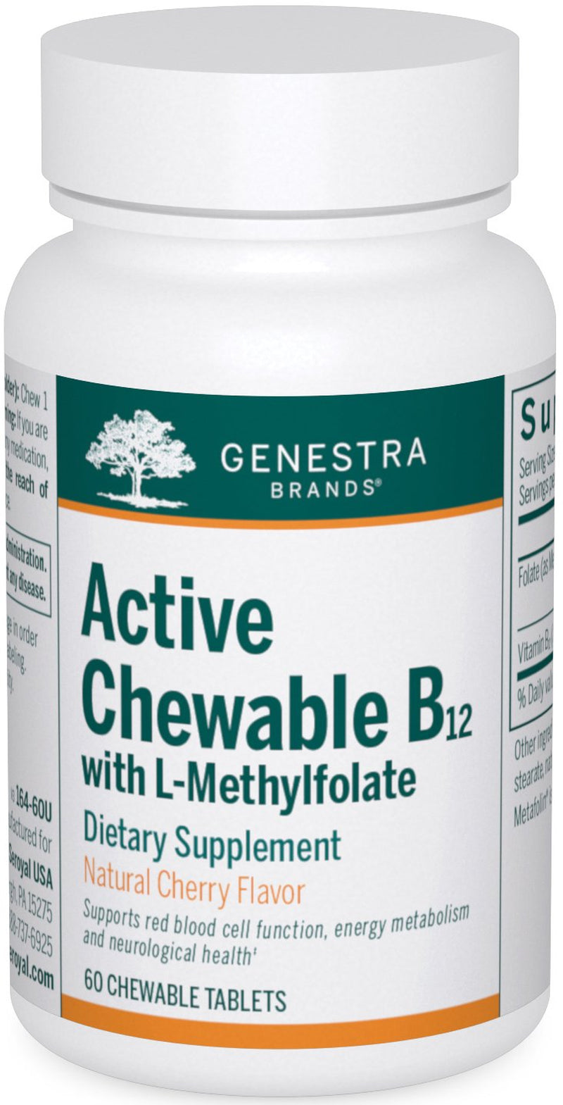 Genestra Brands Active Chewable B12 with L-Methylfolate | Chewable Vitamin B12 and Folate Supplement | 60 Chewable Tablets | Natural Cherry Flavor is backordered and will ship as soon as it is back in stock.