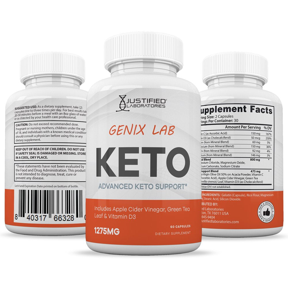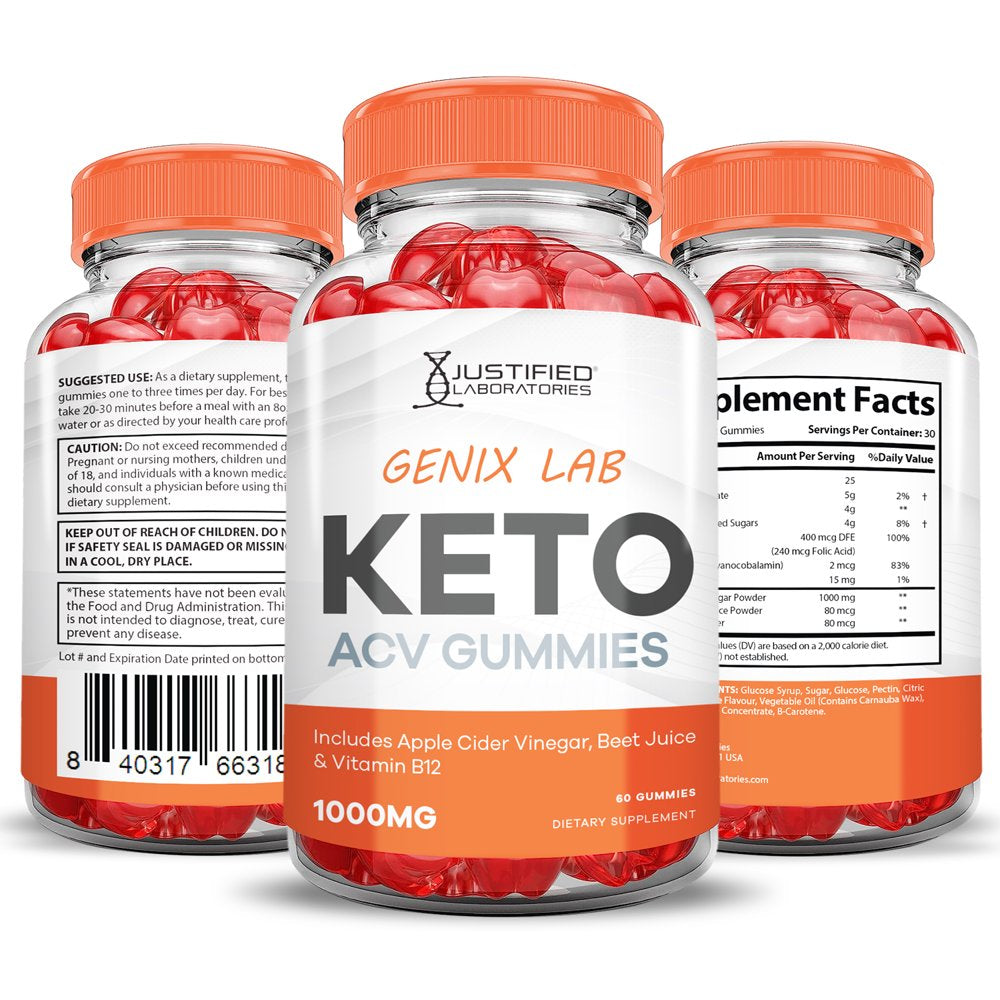 - GENIX LAB KETO ACV GUMMIES & PILLS: Our delicious Lifetime apple cider vinegar gummies fuel your body with energy and vitamins while tasting like a sweet treat! Justified Laboratories Keto Pills 1275 mg Proprietary Keto formula includes magnesium, calcium and sodium, which are key nutrients your body can be depleted of during ketosis.