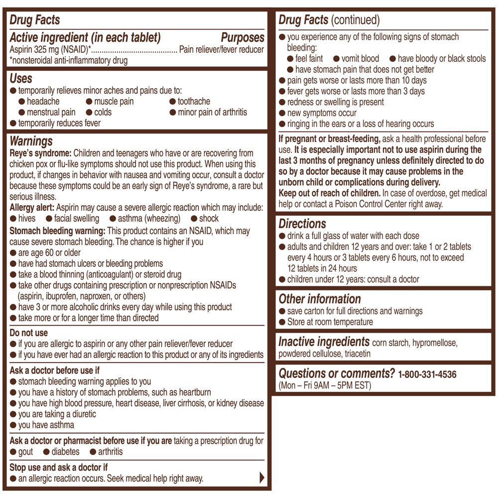- Genuine Bayer Aspirin 325 mg, Multi-Symptom Pain Reliever, 200 Coated Tablets