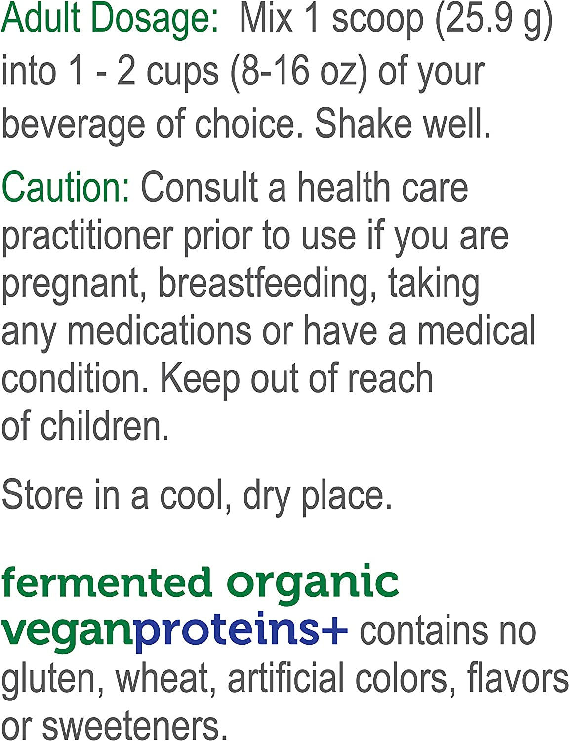 - Fermented vegan proteins+ contains no artificial colors, flavors, or sweeteners