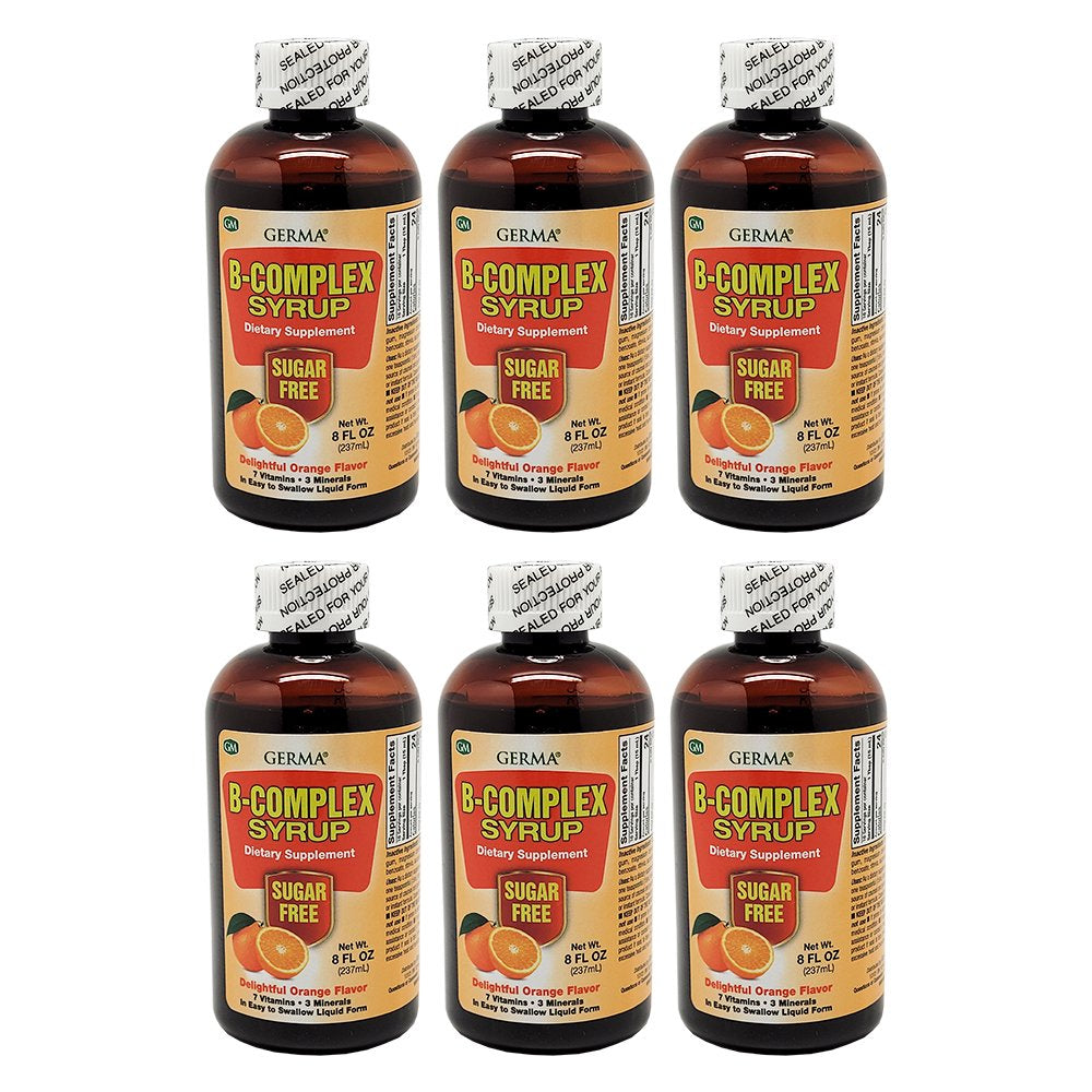 Germa B-Complex Syrup. Dietary Supplement. Bone Health, Growth and Development Aid. Sugar Free. Orange Flavor. 8 Oz. Pack of 6 is backordered and will ship as soon as it is back in stock.