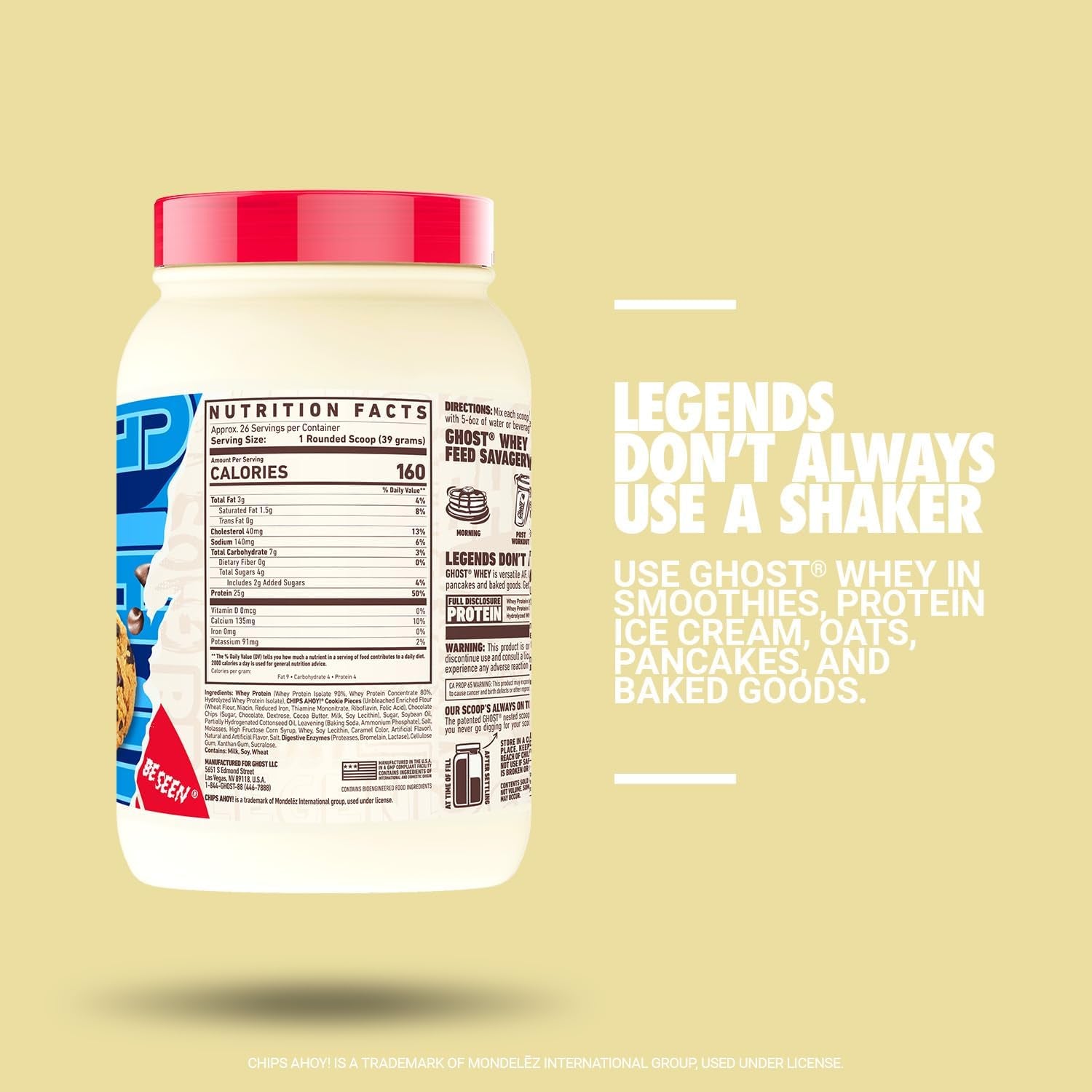 - Versatile and Delicious AF: GHOST WHEY x CHIPS AHOY! combines a premium, fully disclosed whey protein blend, a few digestive enzymes, and real CHIPS AHOY! cookie pieces in every scoop for a flavor that is second to none. 26 servings.