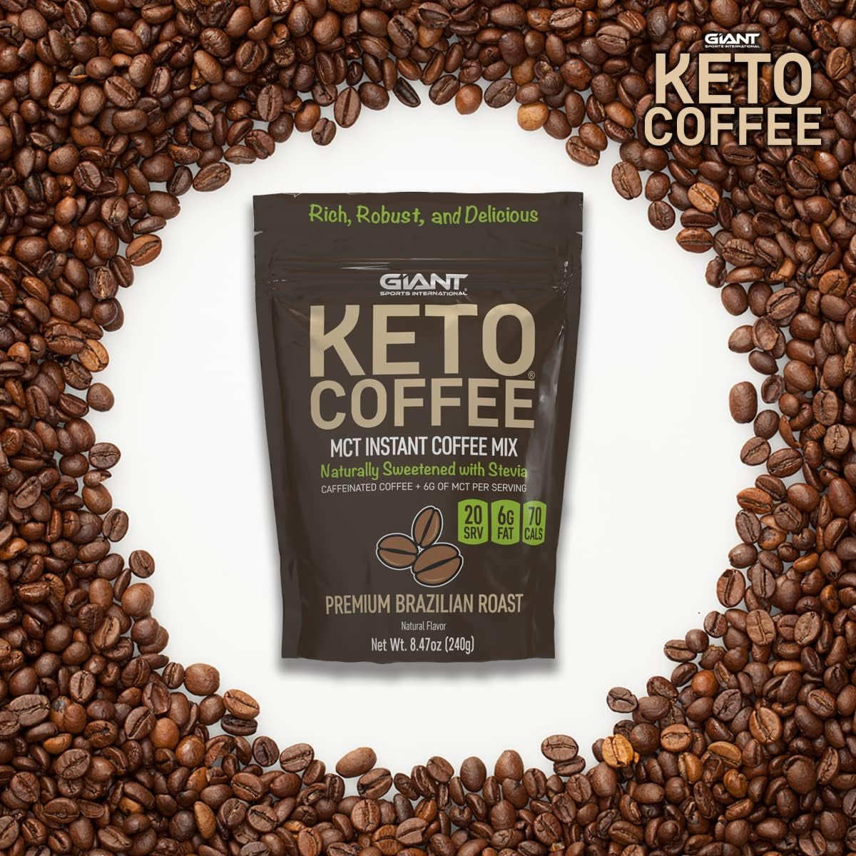 - KETO COFFEE provides you with sustainable energy, focus and a metabolic boost with 6g of premium MCTs and 180mg of naturally-occurring caffeine per serving. It’s perfect for starting your day or helping to kick you into high gear when you need it.