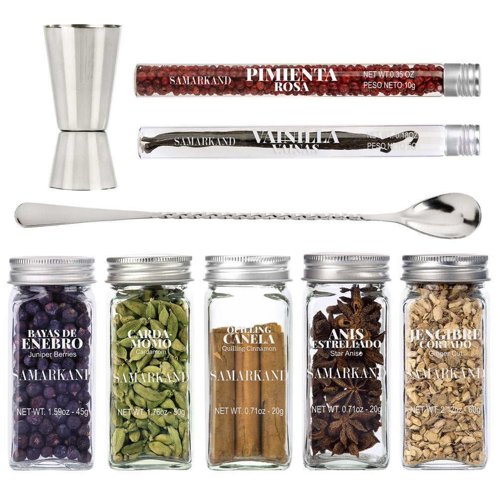 Gin and Tonic Premium Gift Set of Cocktail Botanicals and Spices with Spoon & Dispenser - Mixology Flavoring Kit. Gin and Tonic Cocktail Botanicals Spices. Contains vanilla pods, pink pepper, quilling Ceylon cinnamon, cardamom, juniper berries, ginger cut and star anise. Perfect gift for Gin and Tonic lovers. Brand: SAMARKAND Item Form: Liquid Item Weight: 200 Grams Age Range: Adult