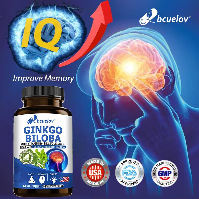 Extra Strength Formula: Provides 5000mg of Premium Ginkgo Biloba per serving (2 vegetarian capsules). This Ginkgo vitamin is standardized to contain 24% Ginkgo flavonoid glycosides (Ginkgo USP grade) and 6% terpene lactones. Ginkgo biloba is considered a nootropic plant because it has been used for thousands of years to naturally support cognitive functions such as memory, concentration, focus, and mental alertness. Boosts Energy + Alertness: Feeling Tired? Formulated with Ginkgo Biloba Extract to boost energy and alertness levels throughout the day. It helps the body feel energized throughout the day without feeling jittery, helping a person be more active and get work done. Ginkgo biloba is one of the most commonly used brain supplements to improve mental function. Combine it with bacopa monniera and B vitamins to boost blood flow, oxygen and nutrient absorption in the brain. Brain Function + Circulation: Ginkgo Biloba is a powerful botanical that has been shown to support healthy memory, focus and circulation. Ginkgo is said to help enhance blood flow and oxygen to the brain to support cognitive health. Our Ginkgo Biloba formula helps improve alertness, memory, problem solving, focus, cognitive performance and overall neuronal health while reducing brain fog and inattention. When the mind is active and in the right state, logical reasoning and creativity are enhanced. GREAT FOR BUSY PROFESSIONALS: Don't have time for anything complicated? Just 2 capsules per day, each serving contains Ginkgo Biloba Extract, Bacopa monniera, Centella Asiatica, Folic Acid and B Vitamins. Our Ginkgo formula contains all the key ingredients to help improve mental clarity, cognitive performance, memory and physical strength, support eye health, and combat work stress and anxiety. TESTED PURE & QUALITY: Pure, Gluten Free, Non-GMO, Third Party Lab Tested, Vegan. Free of pesticides, herbicides, fertilizers, fillers, yeast, sugar, soy, dairy, antibiotics and preservatives. We're proud to provide 100% safe supplements for you and your family. It is formulated and manufactured in an approved cGMP facility in the USA. Suggested use/how to use: As a dietary supplement, take 2 capsules daily, or as directed by a healthcare practitioner. Store in a cool, dry place. Do not expose to sunlight or moisture. Close the lid after opening. βββββββ Shelf life: 2 years Content capacity: 60/120/pcs Storage: Avoid direct sunlight, high temperature and high humidity, please eat as soon as possible after opening. Note: Pregnant women, lactating women and those with liver insufficiency, please consult your doctor first.