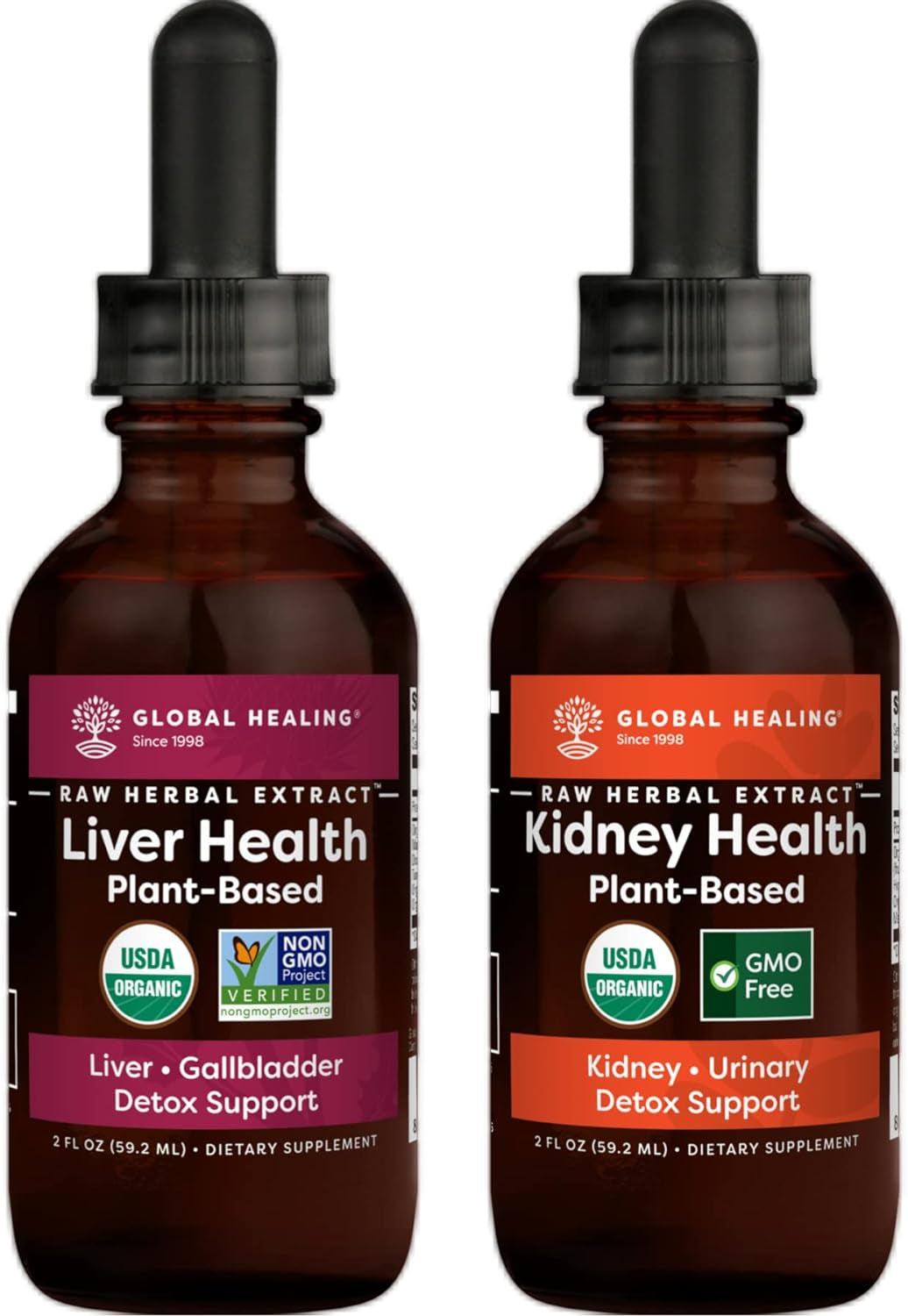 Global Healing Center Liver & Kidney Health Kit - Liquid Supplement Drops Support Liver and Gallbladder Detox & Function and Organic Kidney Cleanse & Urinary Health for Bladder - 2 Fl Oz Each