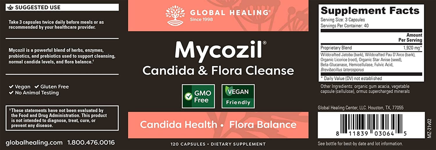 Global Healing Center Mycozil & Oxy-Powder Kit - Vegan Supplement Support Detox of Candida & Harmful Organisms for Gut Health, Oxygen Based Colon Cleanser of Intestinal Tract - 180 Capsules Total is backordered and will ship as soon as it is back in stock.