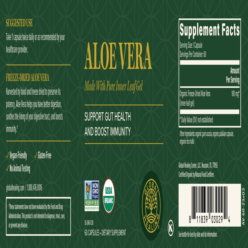 | Product Name | Global Healing Organic Aloe Vera Leaf Supplement - 60 Capsules |