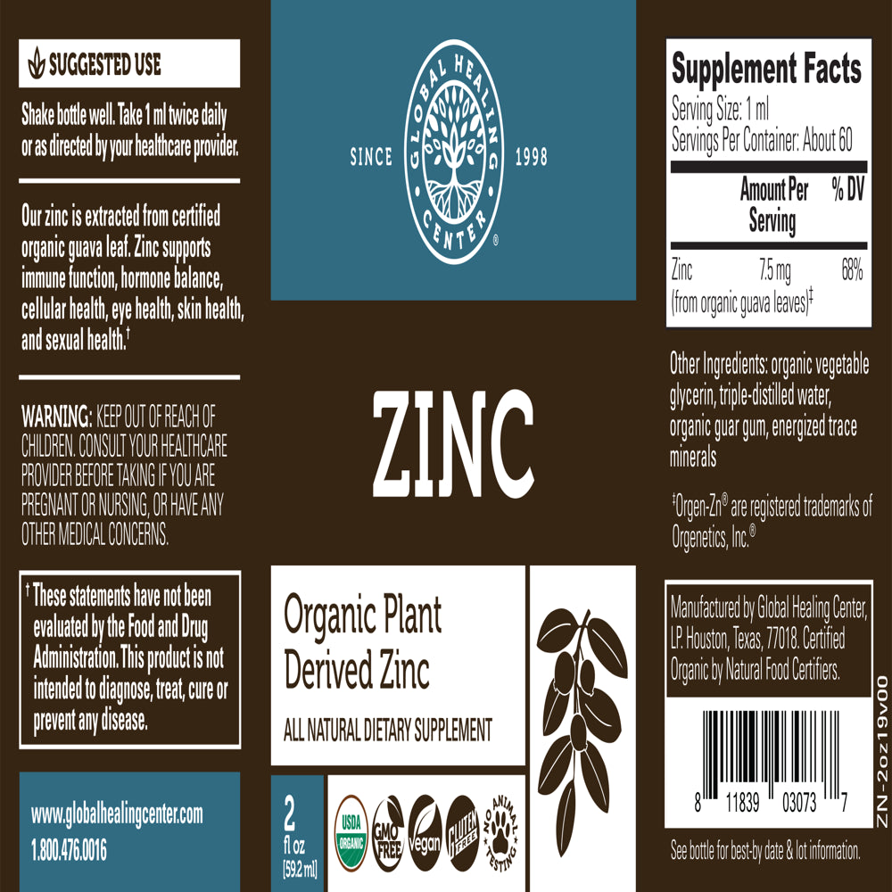 Global Healing Organic Zinc Liquid Supplement for Adults - 2 Fl Oz