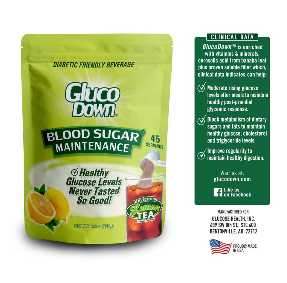 GlucoDown is enriched with vitamins & minerals, banaba leaf and clinically proven soluble fiber, which helps maintain healthy blood sugar levels. Delicious and Diabetic Friendly. 45 Servings.