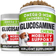 Glucosamine Treats for Dogs - Joint Supplement W/Omega-3 Fish Oil - Chondroitin, MSM - Advanced Mobility Chews - Joint Pain Relief - Hip & Joint Care - Chicken Flavor - Made in USA