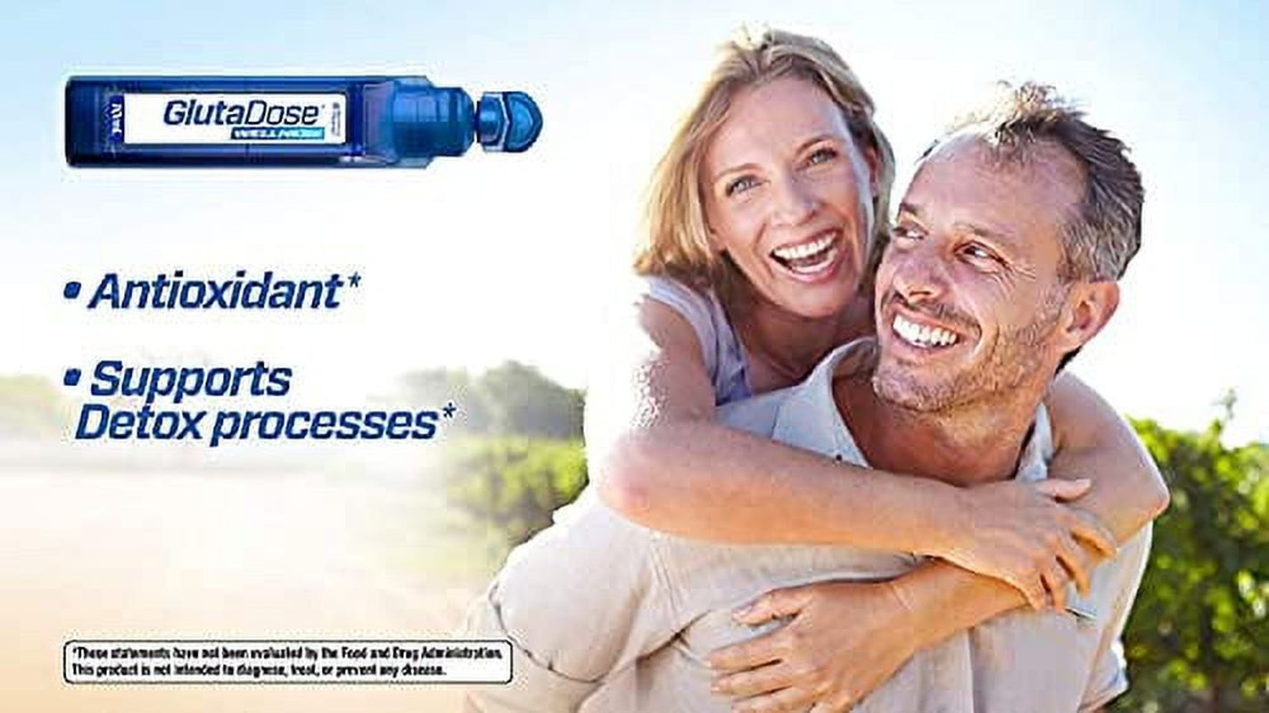 GlutaDose WellnessIs a formula composed of L-Glutathione, Vitamin C, Zinc and Acerola Extract. It is presented in single liquid vials for convenient use and precise dosage. It requires no preparation to consume, simply open the plastic vial, release the liquid into your mouth, hold for 15-20 seconds and then swallow. You will notice that unlike other liquid Glutathione, GlutaDose has a pleasant citric taste, similar to lemon and berry. Start enjoying the benefits of Glutathione by taking GlutaDose daily.L-GLUTATHIONE (Cysteine, Glycine and Glutamic Acid), a complex similar to the Glutathione (GSH) produced naturally within body.VITAMIN C an excellent antioxidantACEROLA a natural fruit with a high content in Vitamin C (around 30 times more than an orange)ZINC a mineral with antioxidant properties.GlutActiveFormulas are made with the highest quality ingredients, starting with SETRIA’s L-Glutathione, plus pure Acerola extract (powerful source of natural vitamin C), L-Cysteine, Zinc Gluconate, Selenomethionine, and Resveratrol.Glutathione is an essential antioxidant in the body but our body's glutathione level will be depleted under some conditions. GlutActive is a good formula to improve your skin, also quality assurance tested for purity and potency; naturally sugar free, gluten free, non-GMO, soy free and no added dye.