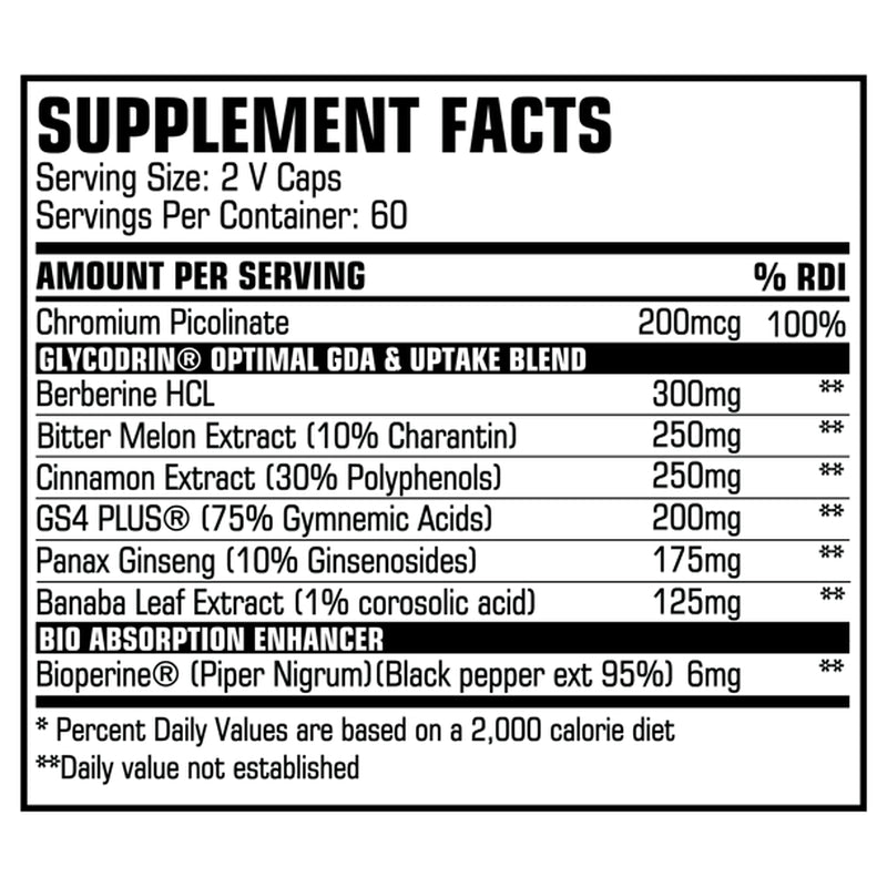 GLYCODRIN - Powerful GDA, Glucose Disposal & Nutrient Partitioner Agent with GS4 Plus; 120 V Caps (60 Servings)