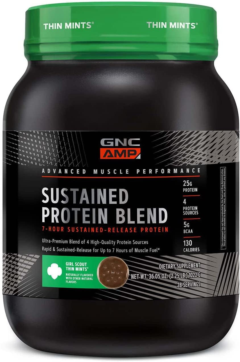 - ABOUT THE PRODUCT: GNC AMP Sustained is an innovative dietary supplement containing four protein sources, including native whey isolate, micellar casein, egg whites, and whey hydrolysate, delivering seven hours of sustained protein release throughout the day.